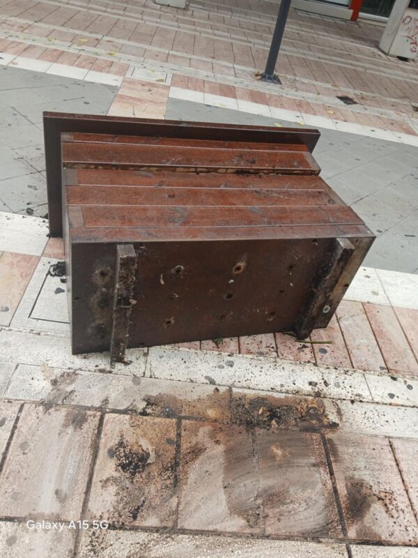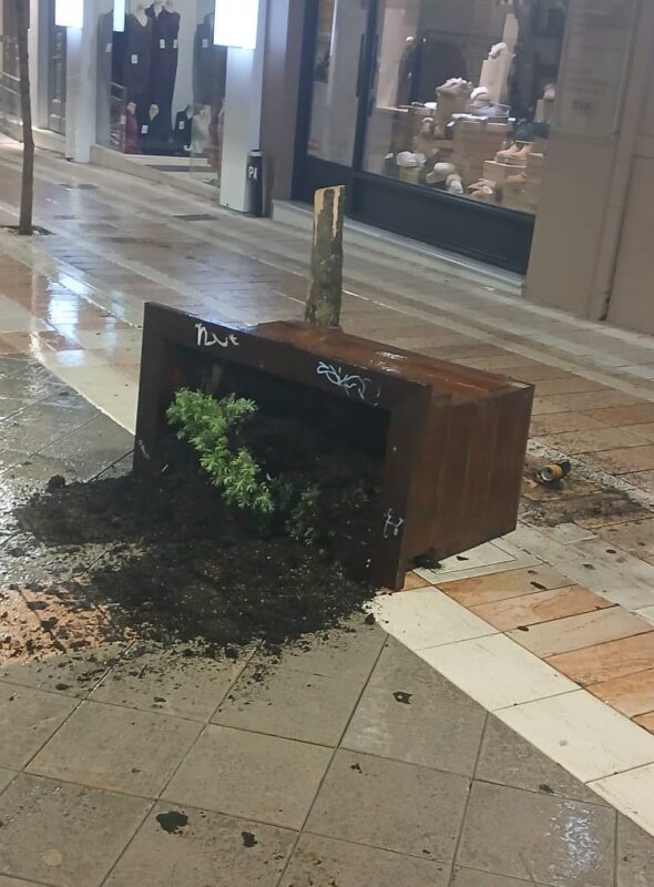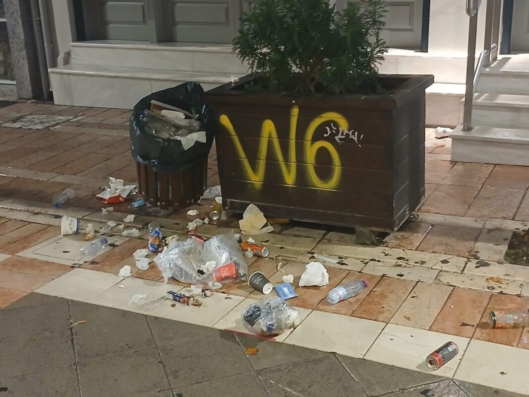 Άθλια η εικόνα που παρουσίαζε το κέντρο του Αγρινίου σήμερα το πρωί μετά τους βανδαλισμούς που έγιναν τα ξημερώματα από «αγνώστους».