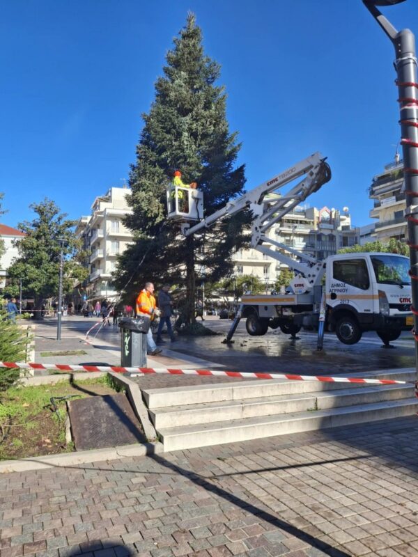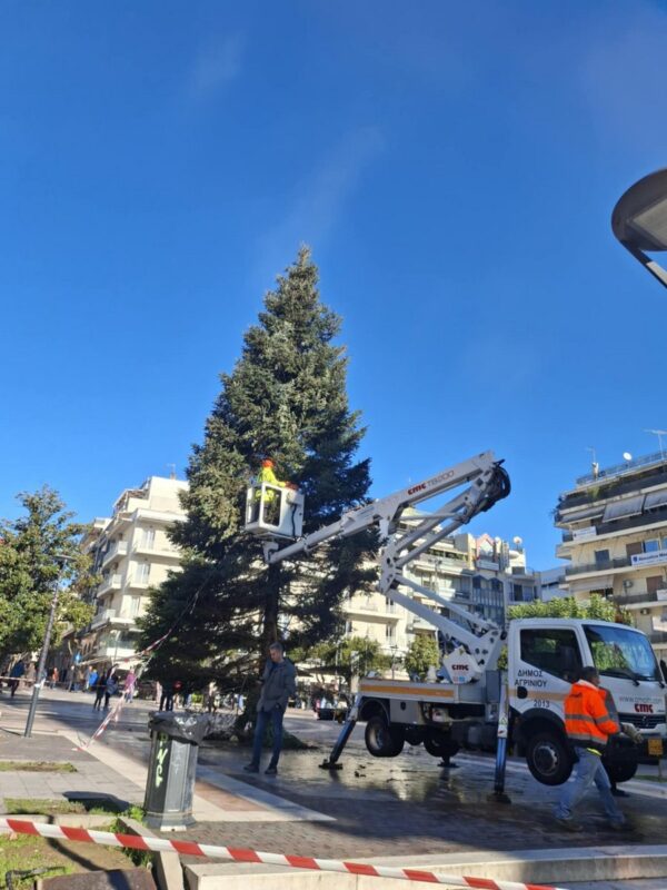 Ένα πανύψηλο φυσικό Χριστουγεννιάτικο Δέντρο κοσμεί την Πλατεία Δημοκρατίας Αγρινίου. Σήμερα το πρωί οι υπάλληλοι από το πράσινο προχώρησαν την τοποθέτηση του στο κέντρο της πόλης.