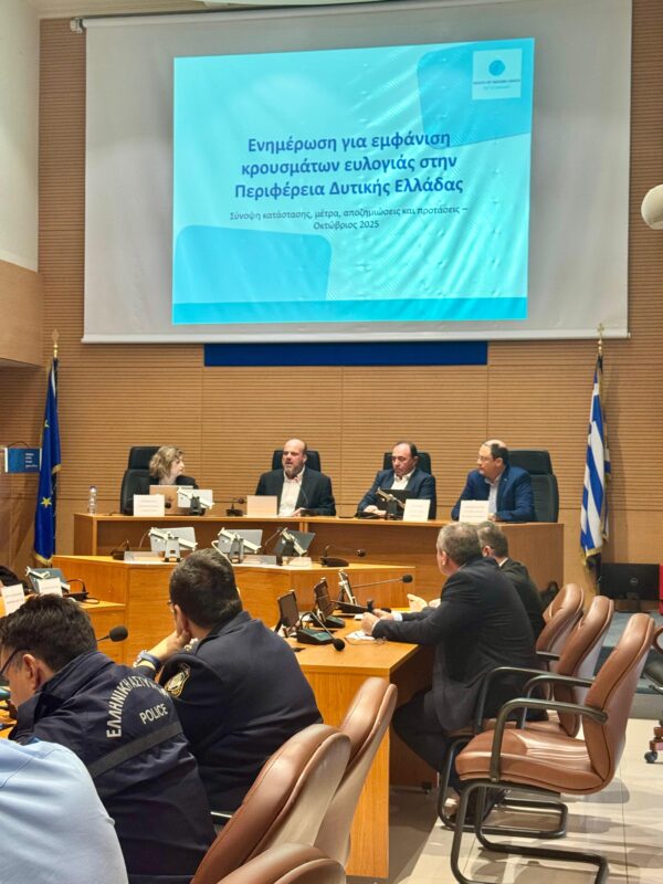 Παράλληλα, επιταχύνονται οι νόμιμες αποζημιώσεις για όσους πληρούν τις προϋποθέσεις. Στη σύσκεψη συμμετείχαν ο Αντιπεριφερειάρχης Αγροτικής Ανάπτυξης κ. Ανδρέας Φίλιας, ο χωρικός Αντιπεριφερειάρχης κ. Θανάσης Μαυρομμάτης (Αιτωλοακαρνανίας), ο δήμαρχος Δυτικής Αχαΐας και ο αντιδήμαρχος Μεσολογγίου καθώς και η Γενική Διευθύντρια Κτηνιατρικής του ΥΠΑΑΤ κ. Κατερίνα Μαρίνου. Παρόντες ήταν επίσης υπηρεσιακά στελέχη της Περιφέρειας Δυτικής Ελλάδας και εκπρόσωποι των αρμόδιων αστυνομικών αρχών.