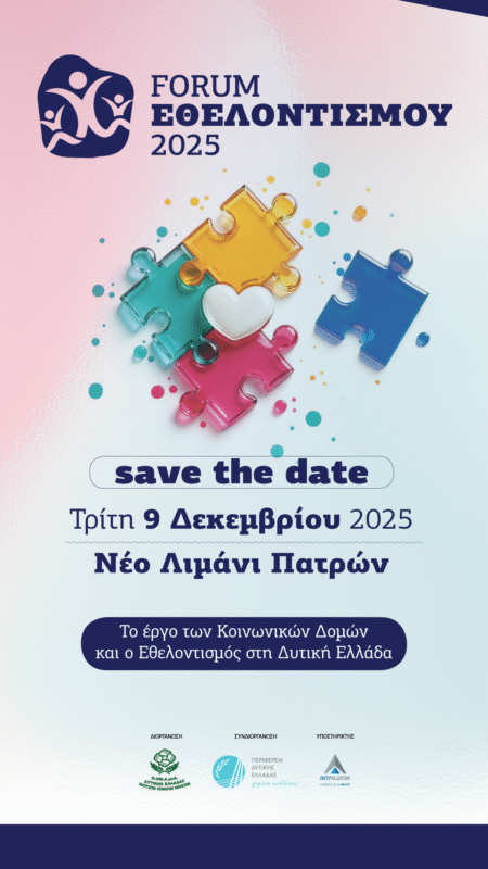 Save the date: Forum Εθελοντισμού 2025 – Τρίτη 9 Δεκεμβρίου στο Νέο Λιμάνι Πατρών