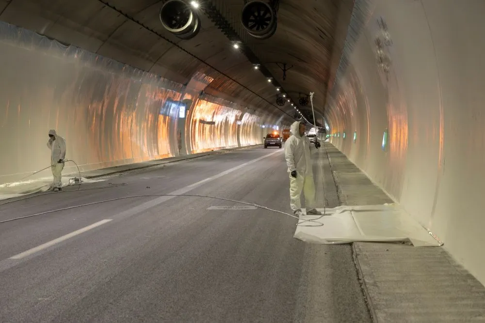- Τα τοιχώματα των σηράγγων επαναχρωματίστηκαν με καινοτόμο φωτοκαταλυτικό χρώμα που διασπά τους ρύπους