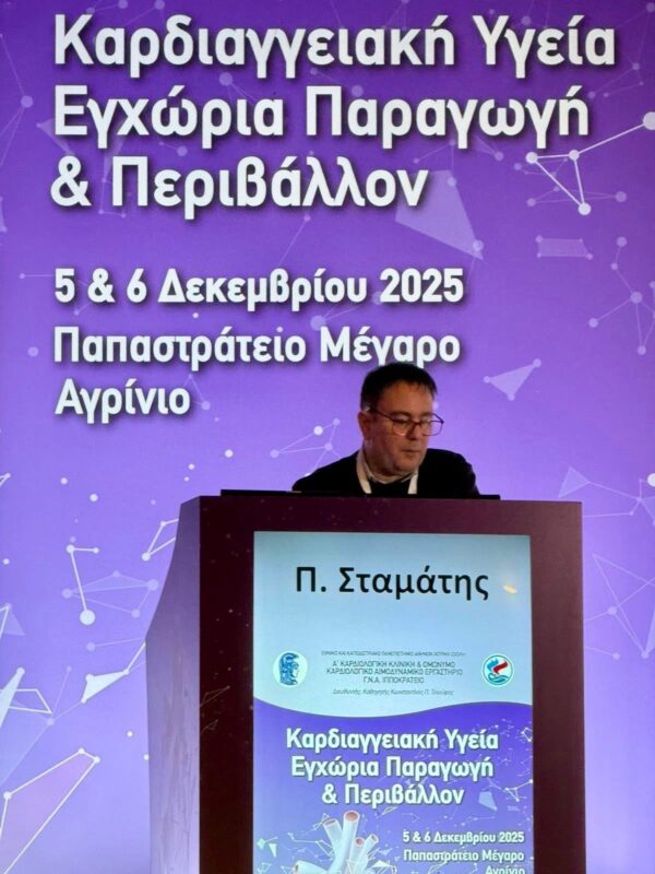 «Πόλος» έλξης για τον Ιατρικό Κόσμο αποτέλεσε για ακόμη μια φορά το Αγρίνιο. Στις 5 και 6 Δεκεμβρίου 2025, στο Παπαστράτειο Μέγαρο Αγρινίου, στο κέντρο της πόλης, πραγματοποιήθηκε το επιστημονικό συνέδριο με θέμα «Καρδιαγγειακή Υγεία, Περιβάλλον και Εγχώρια Παραγωγή».