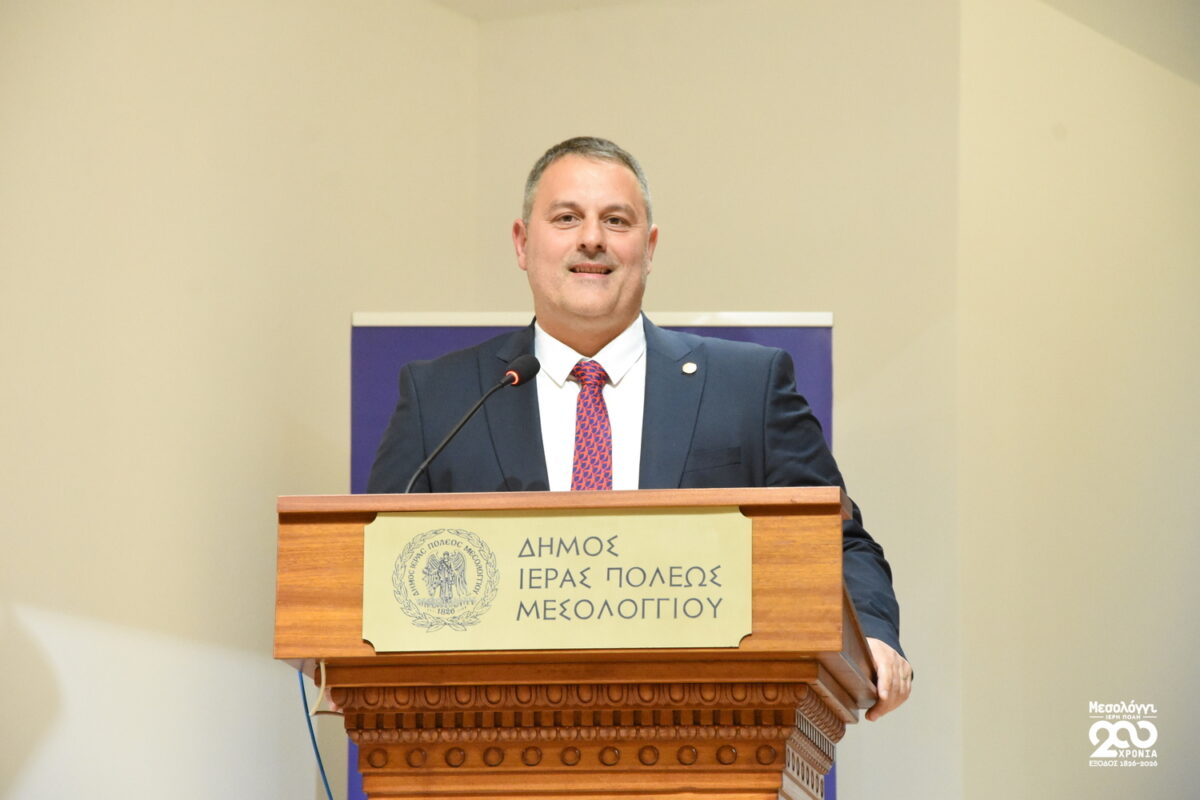 Ο Δήμαρχος της Ιεράς Πόλεως Μεσολογγίου κ. Σπυρίδων Διαμαντόπουλος, ανοίγοντας την εκδήλωση τόνισε στον χαιρετισμό του το χρέος της σύγχρονης γενιάς να τιμήσει με τη δέουσα μεγαλοπρέπεια την κορυφαία αυτή επέτειο. Υπογράμμισε ότι το λεύκωμα και τα νομίσματα δεν είναι απλώς αναμνηστικά αντικείμενα, αλλά φορείς της ιστορικής ταυτότητας της πόλης, που θα ταξιδέψουν το μήνυμα των Ελευθέρων Πολιορκημένων στα πέρατα της οικουμένης. Παράλληλα, εξέφρασε τις ευχαριστίες του προς όλους τους συντελεστές που εργάστηκαν για την υλοποίηση αυτών των υψηλής αισθητικής κειμηλίων, εξαίροντας την άριστη συνεργασία με το ΙΕΤΑ.