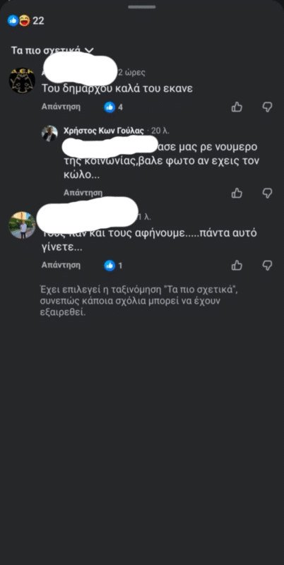 Στο μεταξύ σε μέσο κοινωνικής δικτύωσης ο αντιδήμαρχος καθαριότητας Χρήστος Γούλας απαντά με άκομψο τρόπο σε πολίτη που σχολίασε σε ανάρτηση “του δημάρχου καλά του έκανε” αναφερόμενος στον 34χρονο, “άσε μας ρε νούμερο της κοινωνίας, βάλε φωτό αν έχεις τον κ@@λο”…