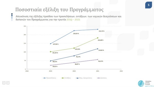 Η σημερινή Περιφερειακή Αρχή ανέλαβε καθήκοντα το τελευταίο 4μηνο του 2019. Έκτοτε, ξεκίνησε μία τεράστια προσπάθεια για να αυξήσει όλους τους δείκτες, γεγονός που αποτυπώνεται και στους πίνακες που επισυνάπτουμε και οι οποίοι αφορούν το διάστημα διοίκησης της σημερινής Αρχής.