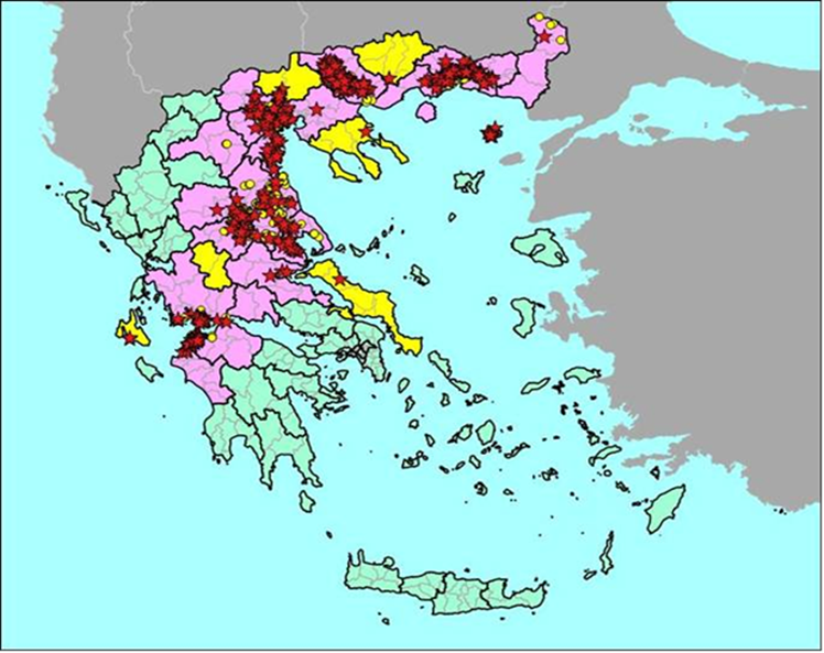 1. Στις απαγορευμένες ζώνες (εικόνα 2) δεν επιτρέπονται μετακινήσεις παρά μόνο για άμεση σφαγή στο πλησιέστερο κατά το δυνατό σφαγείο, κατόπιν αρνητικού αποτελέσματος test pcr στο σίελο.