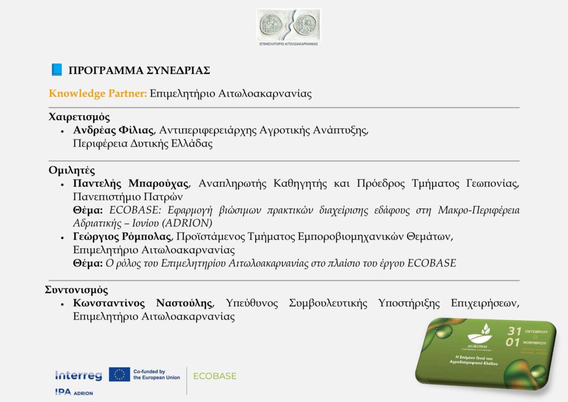 Συνεδρία Επιμελητηρίου Αιτωλοακαρνανίας στο πλαίσιο του 3ου Αγροδιατροφικού Συνεδρίου & Έκθεσης AGROWN 2025