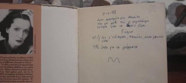 Ο προσωπικός της χρόνος ήταν αποκλειστικά χρόνος διαβάσματος και γραψίματος, από εφημερίδες, λογοτεχνικά βιβλία, δοκίμια και πολλή ποίηση. Η πιο έντονη εικόνα που έχω από τη μητέρα μου είναι να διαβάζει αργά το βράδυ με τα γυαλιά της, δίπλα στο πορτατίφ.