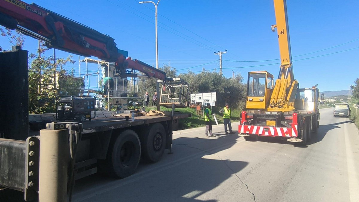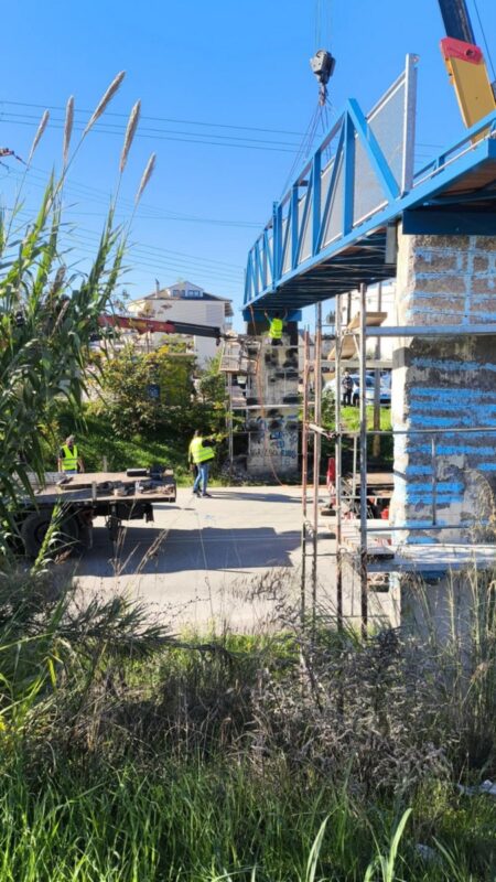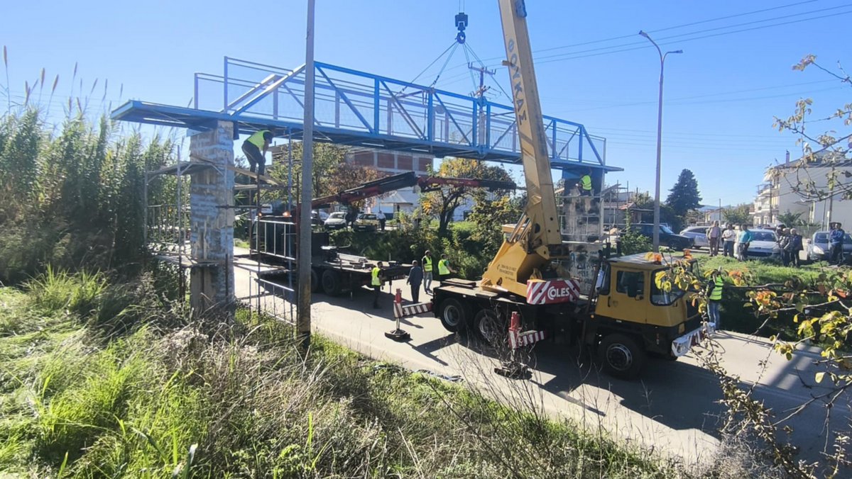 Ξεκίνησαν σήμερα το πρωί οι εργασίες τοποθέτησης της πεζογέφυρας στη Μεγάλη Χώρα.